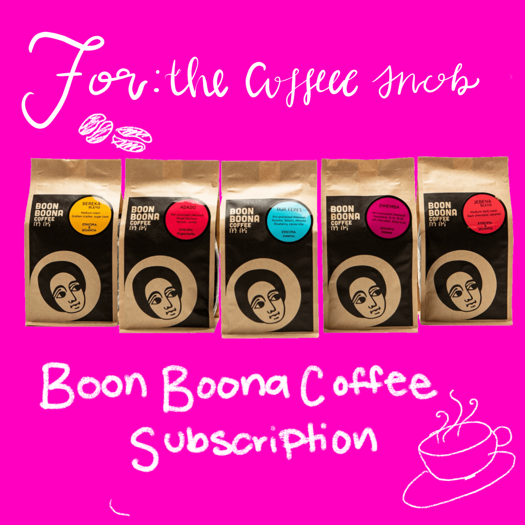 Boon Boona is an Ethopian-owned Seattle coffee shop that combines Eritrean and Seattle coffee culture. All of Boon Boonas coffee beans are sustainably produced in Africa. For $34, you can subscribe to receive two 12 oz bags of coffee on a weekly or monthly basis. As a born-and-raised Seattle coffee snob, I can say Boon Boona is my go-to local coffee shop, and their coffee doesn’t disappoint.